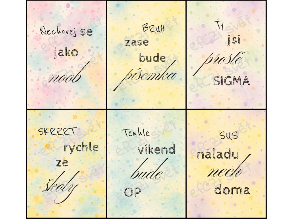 Kartičky jsou určeny výhradně k dekorativním a motivačním účelům.
