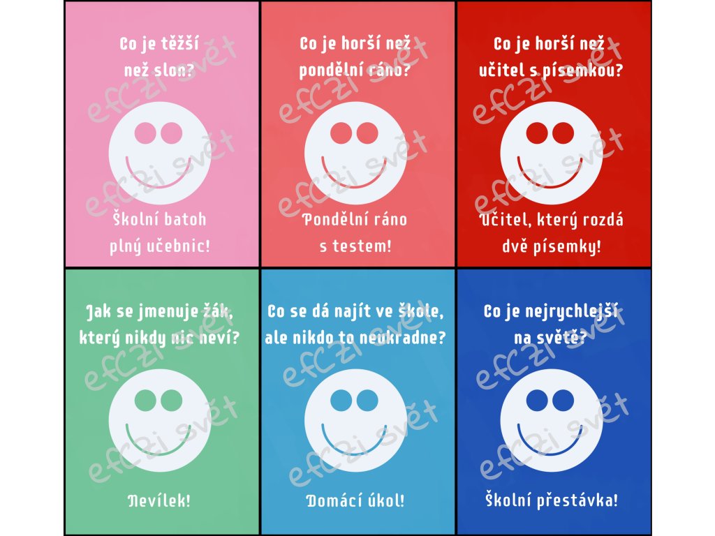 Přineste do školních svačinek trochu vtipu a zábavy s našimi kartičkami plnými hádanek o škole. Na kartičkách najdete vtipné otázky, které se týkají všeho, co souvisí se školou – od předmětů až po každodenní školní zážitky. Stačí jednu kartičku vložit do batohu např. ke svačině a nechat děti hádat a poté se smát při čtení odpovědi. Těšte se, jak si vaše děti užijí chvilku zábavy. Tyto kartičky promění každou přestávku v malou zábavnou soutěž, která rozesměje nejen děti, ale i jejich kamarády. Objednejte si své hádankové kartičky a přidejte do školních dní trochu humoru a zábavy.