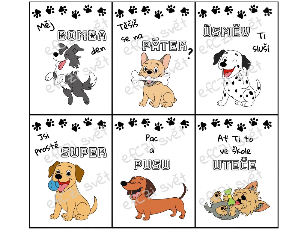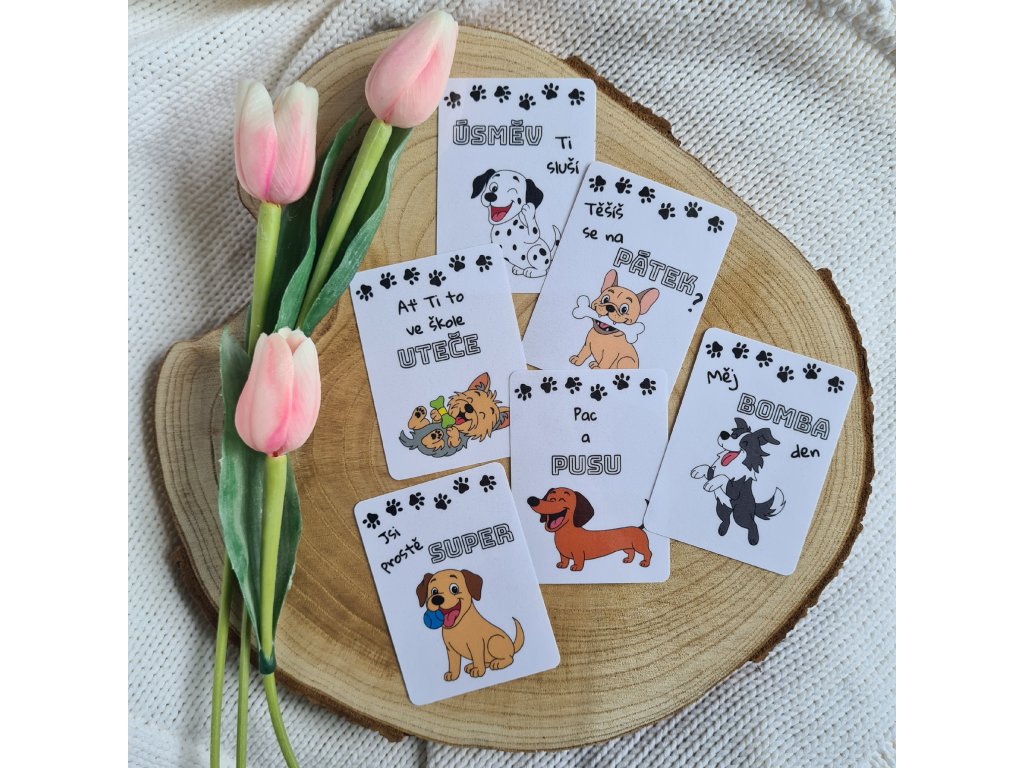 Každý den může být výjimečný – stačí k tomu jen malý detail, který vykouzlí úsměv. A právě tím malým zázrakem může být veselá kartička se spokojeným, hravým pejskem, která čeká na své objevení v batohu např. u svačinového boxu. Protože svačina není jen jídlo – je to chvíle radosti, přestávka plná očekávání a malý okamžik klidu uprostřed rušného dne. Naše nové kartičky s pejsky jsou stvořené právě pro tyto chvíle. V teplých dnech, kdy slunce svítí a vzduch voní létem, se každá svačina může proměnit v zážitek. Děti se těší nejen na to, co dobrého je čeká k zakousnutí, ale i na to, jaký veselý psí kamarád je dnes přijde pozdravit. Pejsci na kartičkách skotačí, culí se, nebo se roztomile povalují – přesně tak, jak si představujeme bezstarostné chvíle v trávě, pod širým nebem. Přinášejí dobrou náladu, optimismus a pohodu. Každá kartička je malý kousek štěstí, který může být součástí každé svačiny. Darujte svým dětem malý důvod k úsměvu každý den. Ať je pro ně svačina chvílí, na kterou se budou těšit nejen kvůli jídlu, ale i kvůli psím kamarádům, kteří s nimi sdílejí každé sousto.