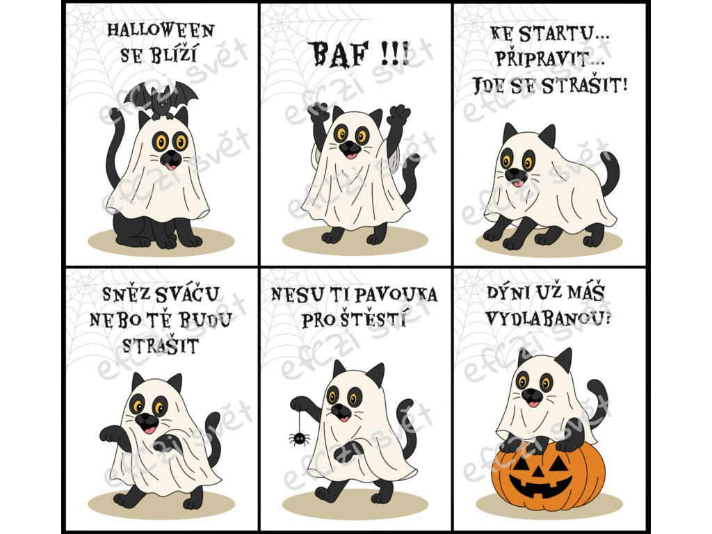 K podzimu neodmyslitelně patří Halloween, který se u nás začíná více a více dodržovat a děti si ho ve strašidelných kostýmech plně užívají. Je to den, kdy se snoubí smích dětí s šustěním kostýmů, vůní dýní a mihotavým světlem svíček. Sice se nestraší po ulicích, ale běžně mají děti akce ve školkách, školách nebo od obce. A právě pro tento kouzelný čas jsme vytvořili tuto sadu. Chcete své děti naladit na tu správnou strašidelnou náladu? Kartičky s černými kočkami vykouzlí úsměv a navodí atmosféru Halloweenu během několika vteřin.