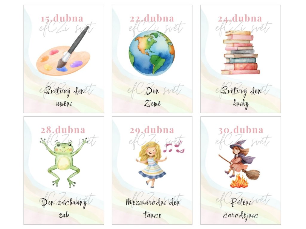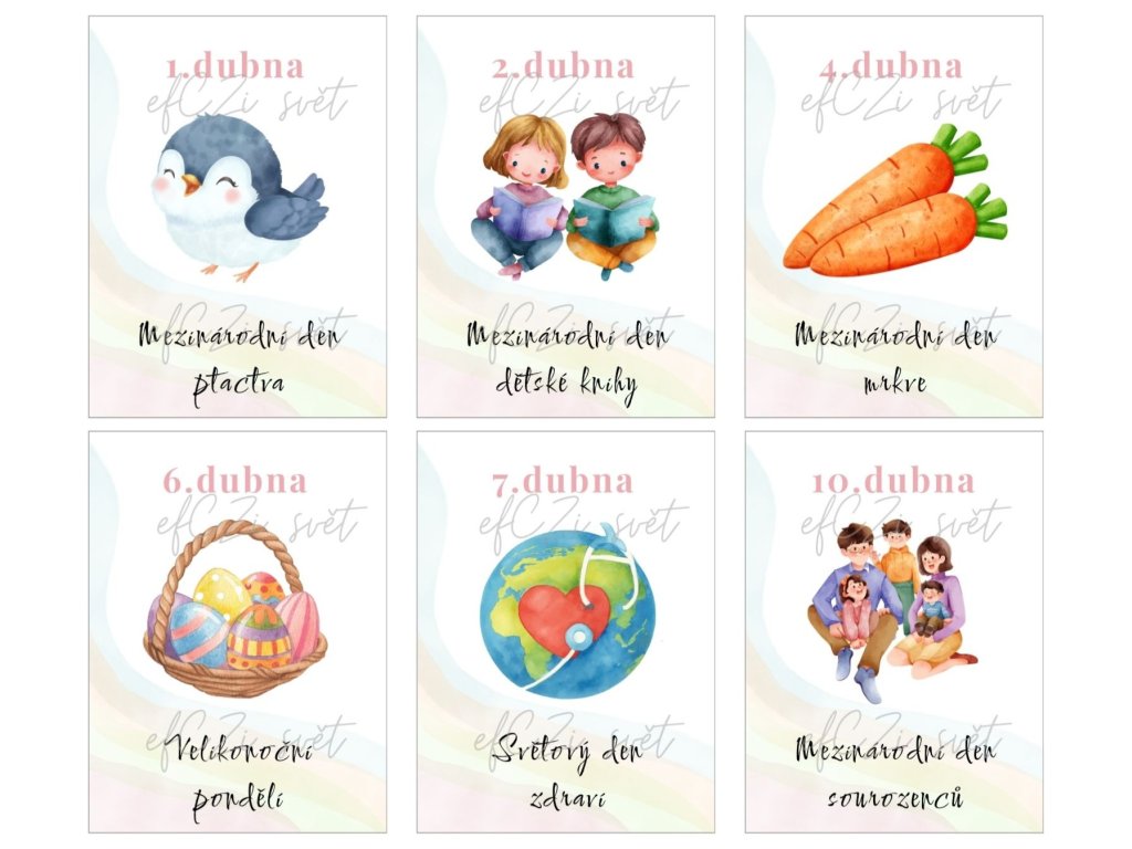 V sadě DUBEN 2026 naleznete tyto významné dny:
