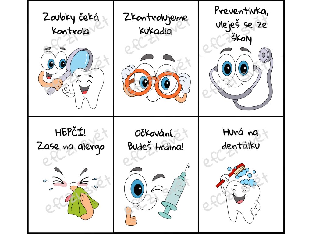 Tyto kartičky dětem dodají odvahu, klid a pocit, že to zvládnou. Ať už jde o preventivní prohlídku, zubní kontrolu nebo třeba vyšetření na alergologii – každá taková situace je příležitostí posílit dětskou sebedůvěru.