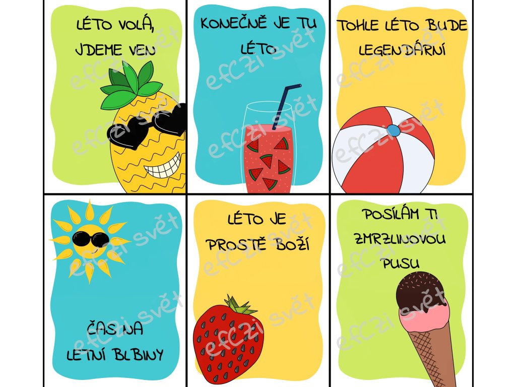 Připravte se na léto plné slunce a radosti s novou sadou kartiček, která rozzáří každou svačinku. Na kartičkách najdete všechno, co k létu patří – od hřejivého sluníčka, přes osvěžující bubble tea, zmrzlinu, až po letní hry s míčem. Stačí je přibalit dětem do batohu.