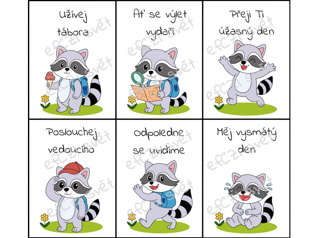 - PDF varianta: 12 ks kartiček (6 kartiček s obrázky a texty + 6 kartiček s obrázky a bez textů, na které si můžete napsat vlastní vzkaz)