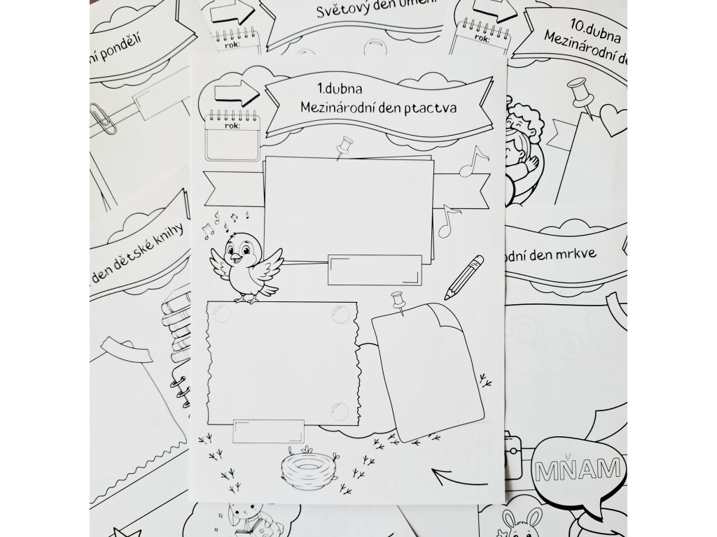 Tento materiál obsahuje 12 scrapbookových předloh pro zaznamenání vašich společných aktivit a chvil s dětmi v daném měsíci. Předlohy můžete vybarvit, doplnit fotografiemi, kresbami nebo vlastními nápady a vytvořit si tak krásnou rodinnou vzpomínku.