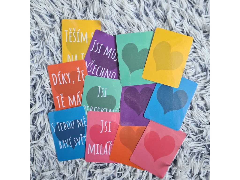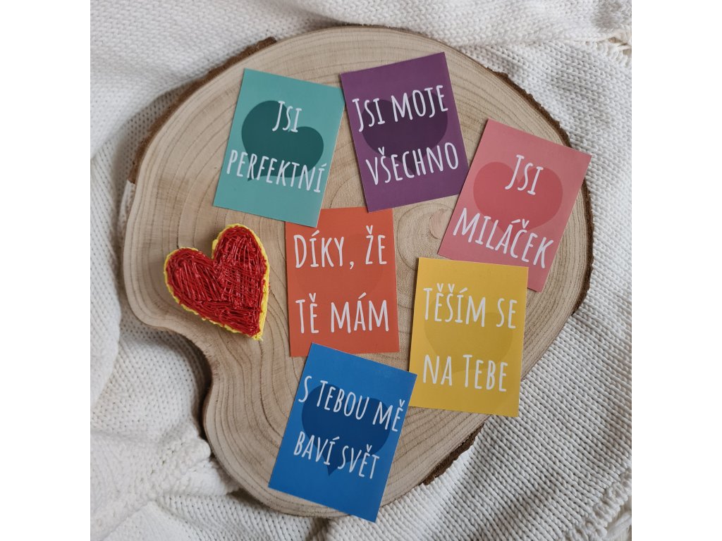 Každé dítě si zaslouží vědět, jak moc je milované – a někdy stačí jen pár krásných slov. Naše kartičky s barevnými srdíčky nesou něžné vzkazy, které dětem připomenou, že na ně stále myslíte, i když jsou ve škole. Stačí kartičku vložit do batohu a nechat ji promluvit za vás. Malé gesto s velkým významem – rozzáří dětský den, zahřeje u srdce a dodá pocit bezpečí a lásky. Pořiďte si kartičky plné srdíček a dopřejte svým dětem každodenní dávku radosti.