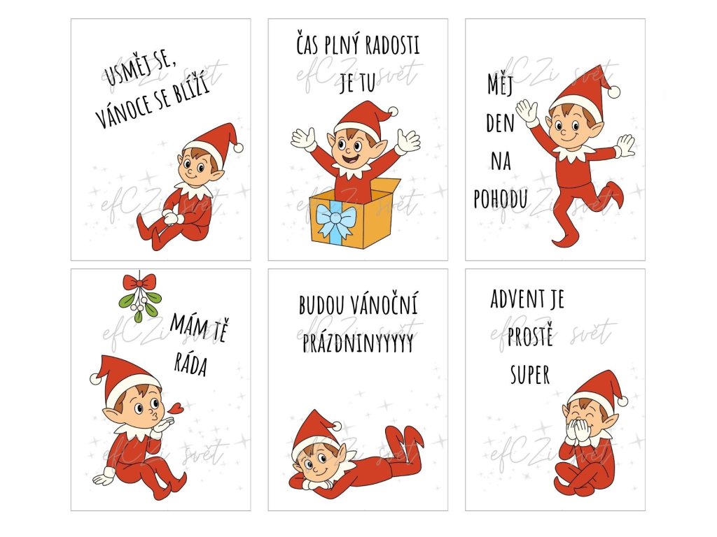 K období Vánoc začal v posledních letech neodmyslitelně patřit vánoční skřítek, který v některých rodinách zdobí interiér, ale někde provokuje děti a tropí neplechy. A ani tady nesmí chybět sada s vánočními skřítky, které mají děti tolik v oblibě. Tato sada přináší do každodenních chvil kouzlo, které si děti zamilují. Každá kartička je navržena tak, aby prosvítila zimní dny a připomněla radostné očekávání Vánoc.