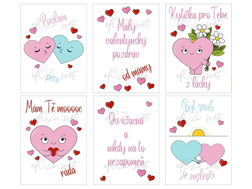 Únor je tady a za pár dní budeme slavit Valentýn :-) Někdo ho má rád, někdo ne. A pokud patříte do první skupiny, určitě vás potěší tato nová sada s valentýnskou tématikou. Ujasněme si ale raději dopředu, že tyto kartičky jsou určené primárně pro holky ;-) Klukům je (nedejbože do školy!) raději nedávejte ;-)