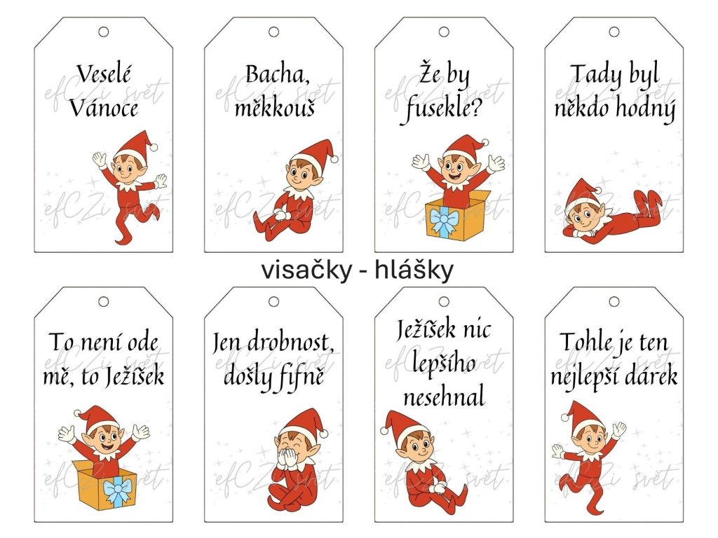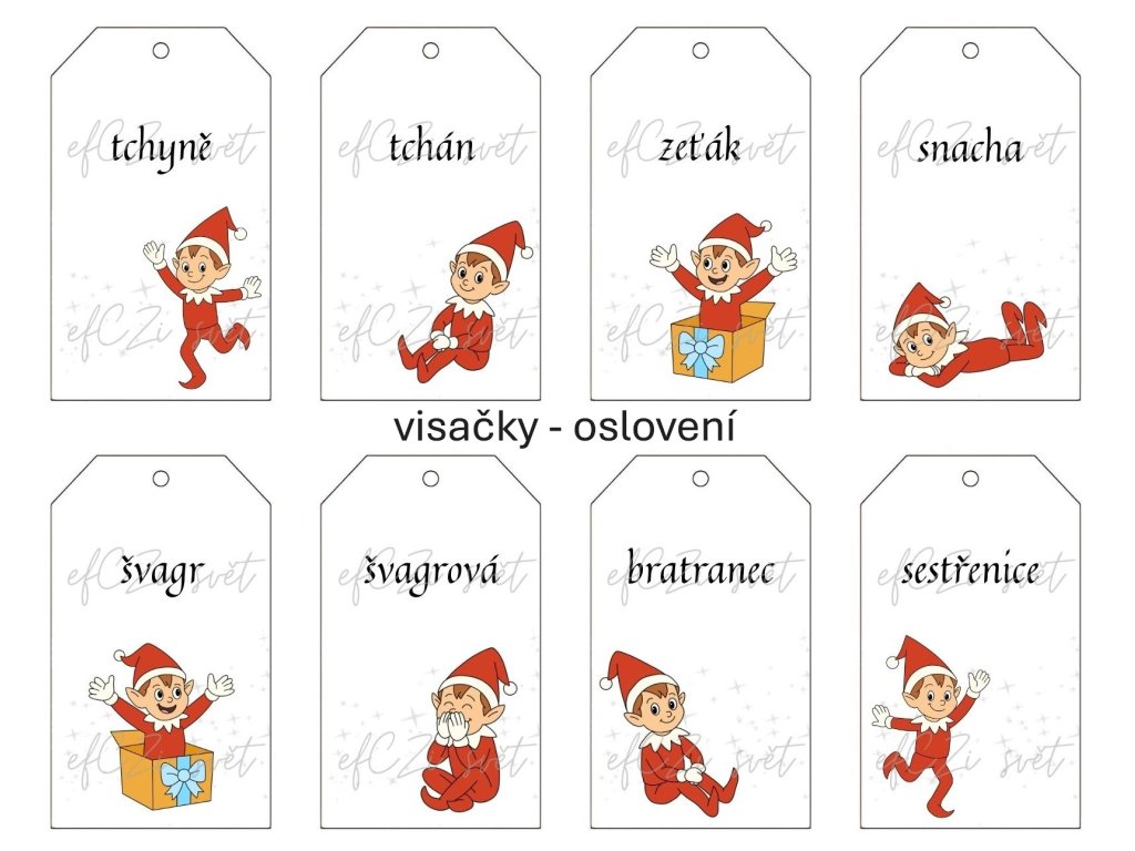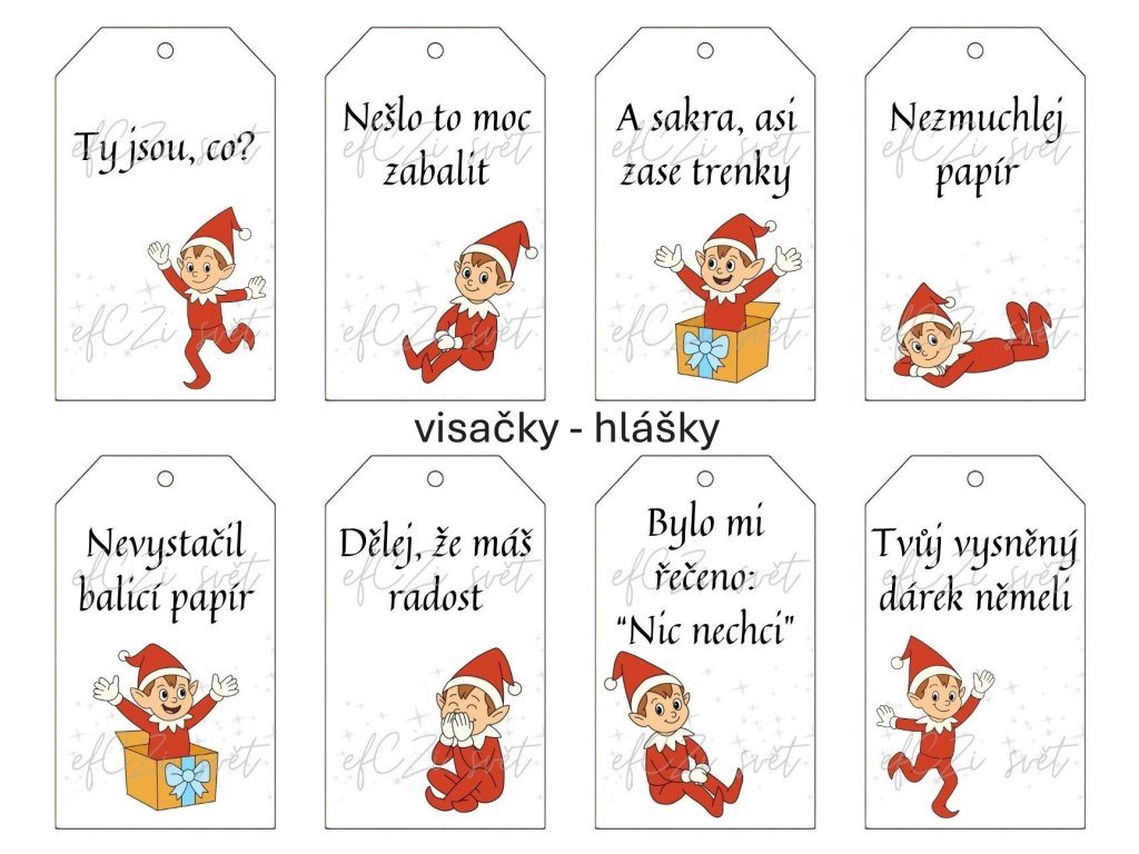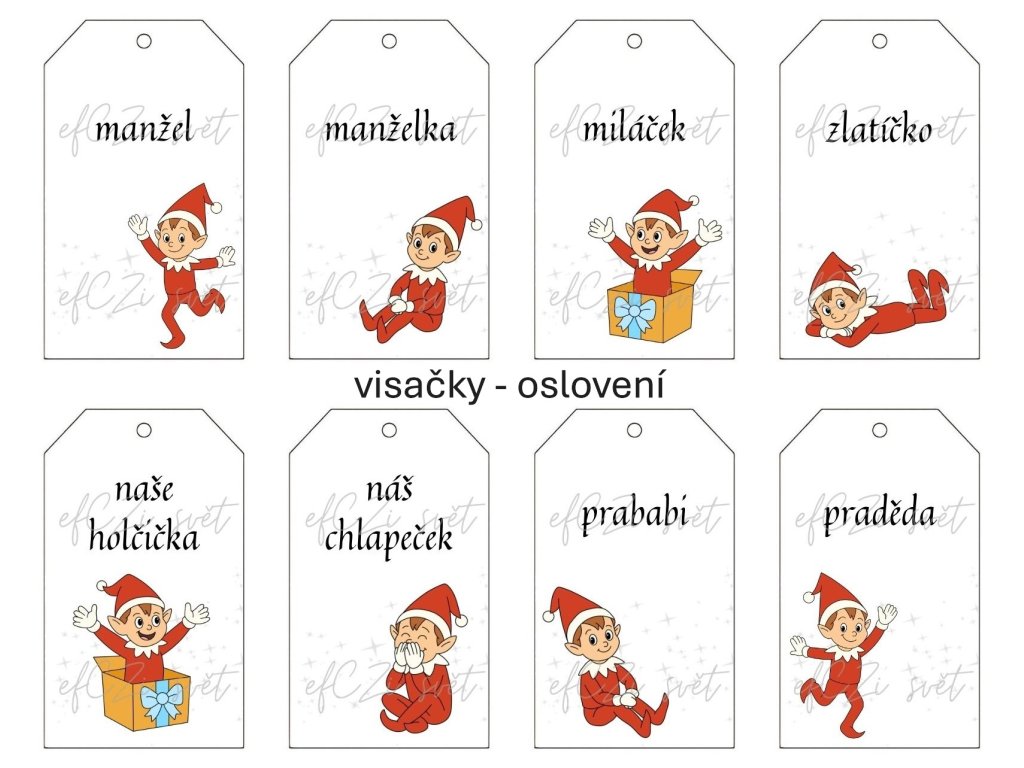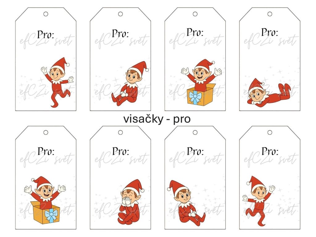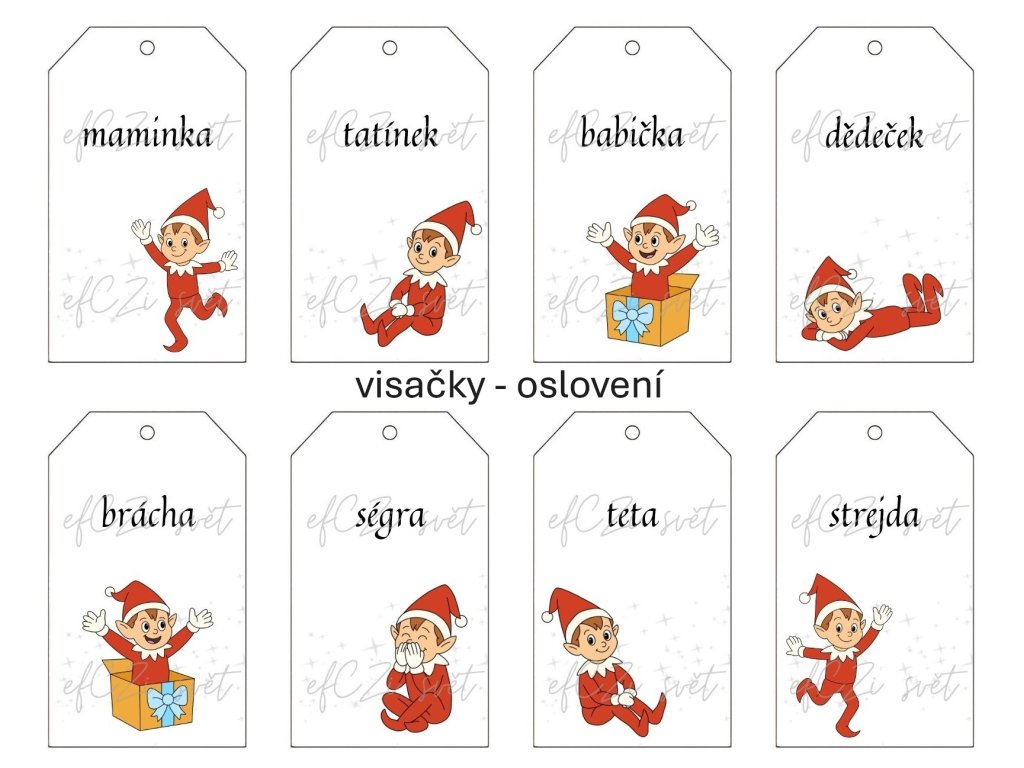 Pokud máte balení dárků rádi a nespokojíte se s napsáním jména obdarovaného fixou na papír, mám pro vás tyto vánoční visačky se skřítkem.