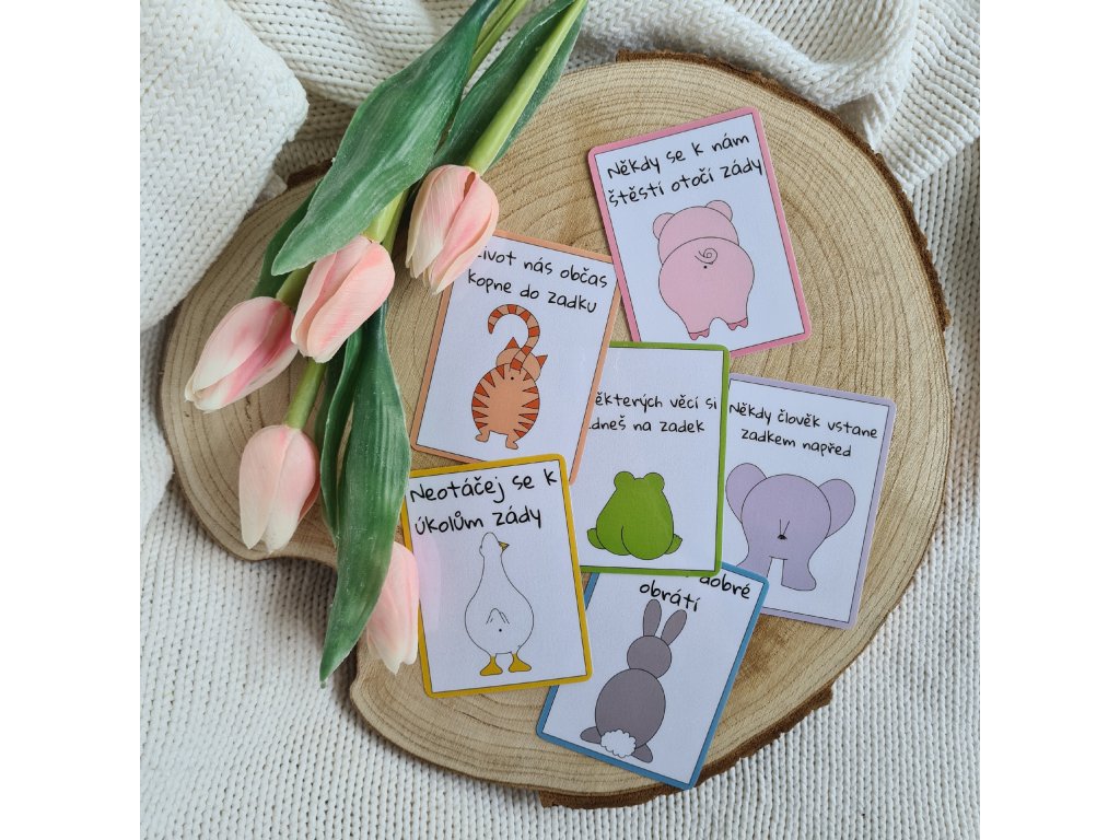 Někdy si opravdu „sedneme na zadek“ – ať už kvůli nějakým problémům nebo když se štěstí otočí zády. Naše zábavné kartičky s roztomilými zvířecími zadečky jsou tu, aby dětem připomněly, že i když nás občas potkají těžší chvíle, všechno nakonec zase dobře dopadne. Každý vzkaz je trošku humorný, ale zároveň plný podpory, který vykouzlí úsměv i na tom nejtěžším školním dni. Stačí vložit kartičku do batohu a nechat skrze ní dítě připomenout si, že občas i z malých potíží může být zábava. Kartičky jsou plné vtipu, ale zároveň motivují k tomu, aby se děti nevzdávaly a pokračovaly i tehdy, když věci nejdou podle plánu. Pořiďte si kartičky, které budou dětem připomínat, že i když štěstí není vždy na naší straně, vždy se můžeme zasmát a jít dál. S těmito vzkazy bude každý den plný optimismu a ochoty čelit čemukoli, co jim přijde do cesty.